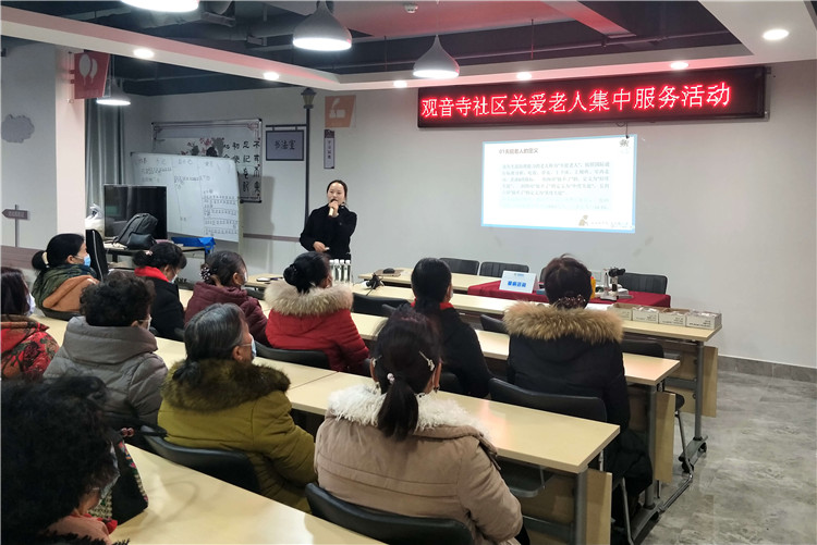 2020年12月31日,昆明市觀音寺社區(qū)于社區(qū)活動(dòng)室組織了《觀音寺社區(qū)關(guān)愛老年人元旦節(jié)集中服務(wù)活動(dòng)》。社區(qū)借助此次活動(dòng)在倡導(dǎo)合理健康的生活方式、提高社區(qū)老年人生活質(zhì)量的同時(shí)幫助老年人拓展社交圈、結(jié)識(shí)新朋友。旨在讓老年人樹立正確的健康觀念,擁有一個(gè)健康多彩的老年生活,也為社區(qū)營造一個(gè)尊老、敬老、助老的和諧氛圍。